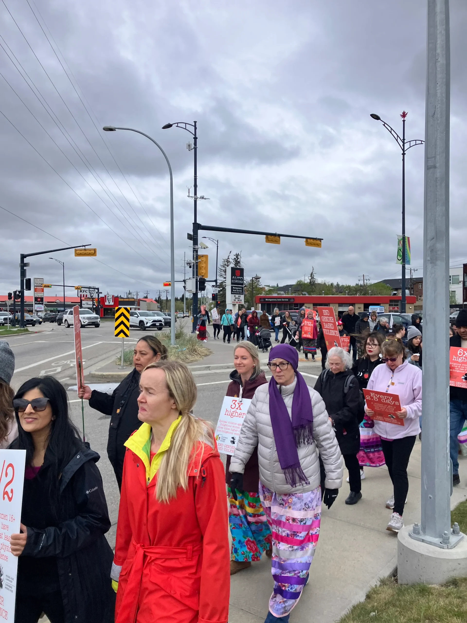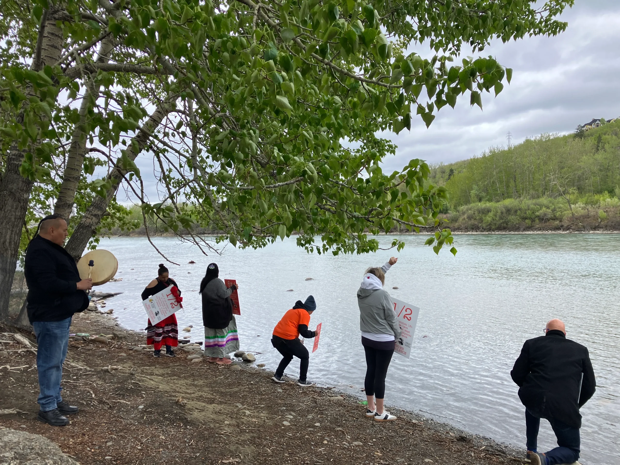 The walk began with a ceremony and tobacco offering at the Bow River. It was an opportunity to honour the sacredness of the land and ground the day in Indigenous tradition. From there, the group walked along the TransCanada Highway and Bowness Road, holding signs and receiving support through waves, honks, and cheers from passing traffic.